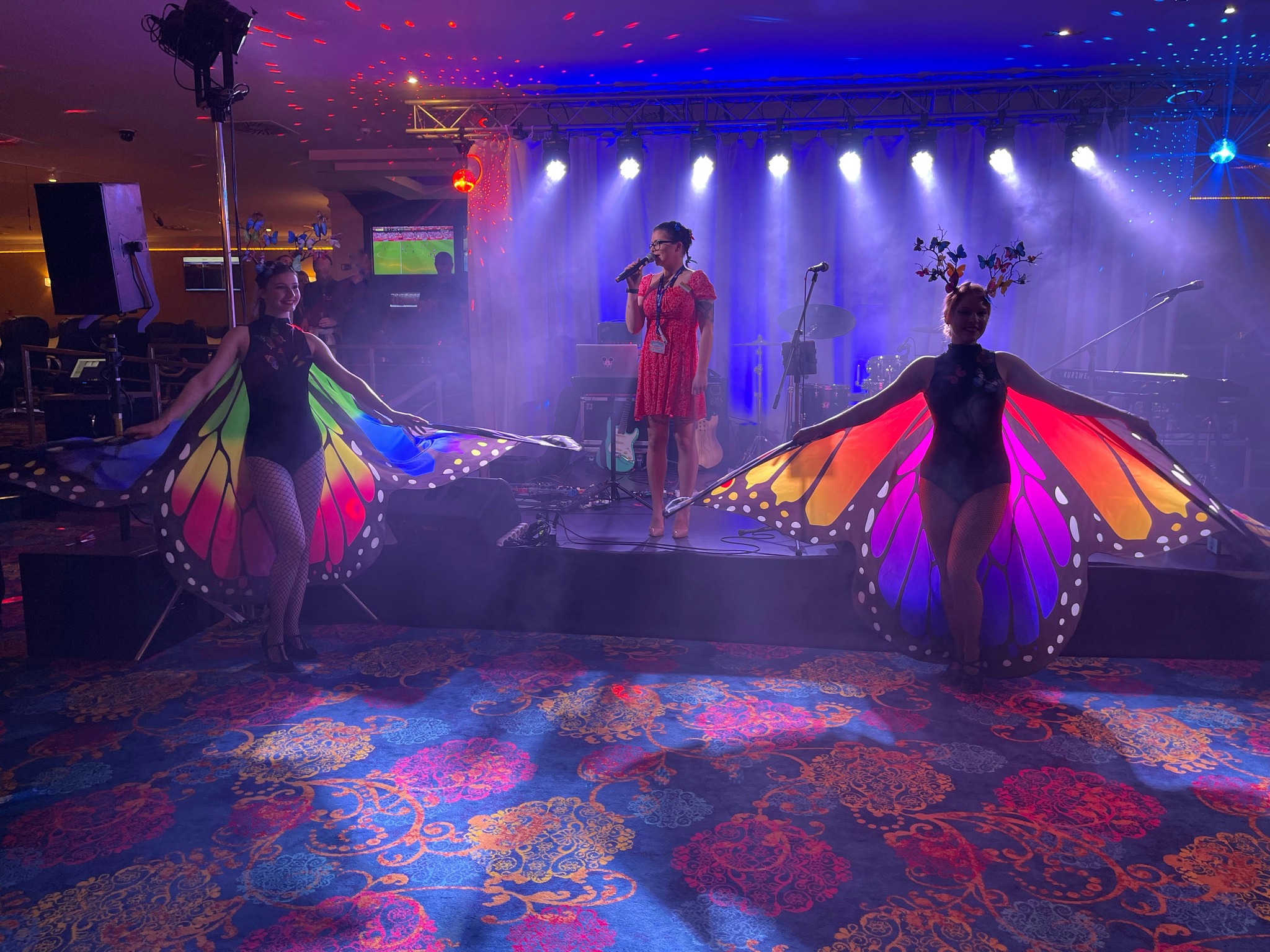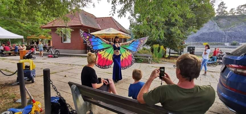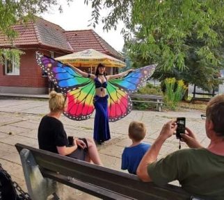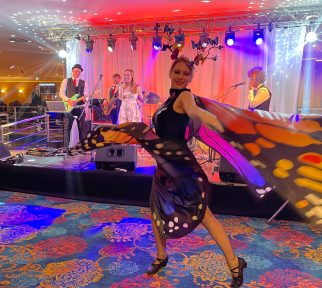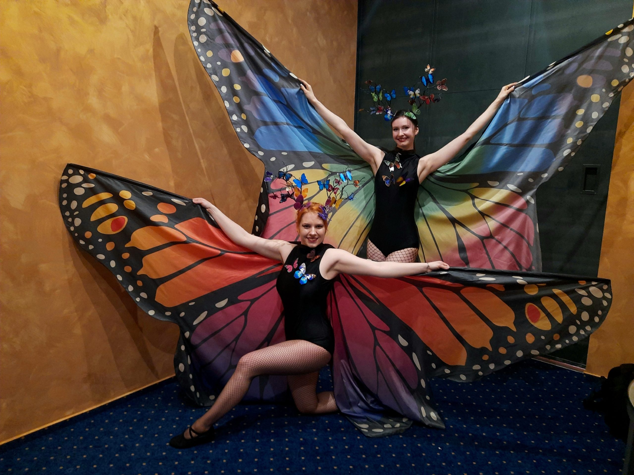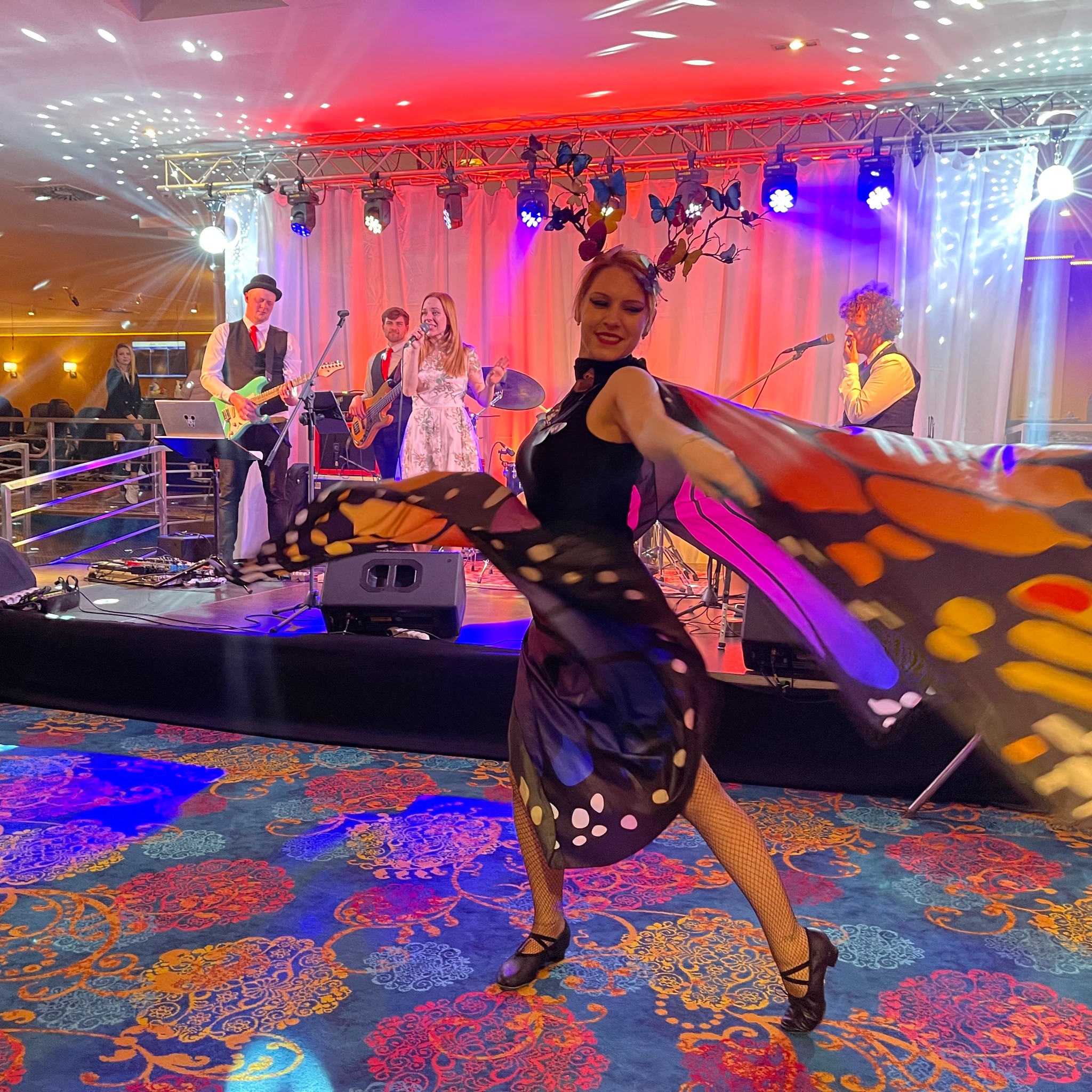 Pestrobarevní motýlci přilétají, aby obohatili váš doprovodný program na firemní akci, soukromé oslavě či svatbě. Velmi elegantní provedení scénického tance na podmanivou smyčcovou hudbu. Doporučujeme vyšší počet tanečnic pro dosažení maximálního zážitku z motýlího roje.