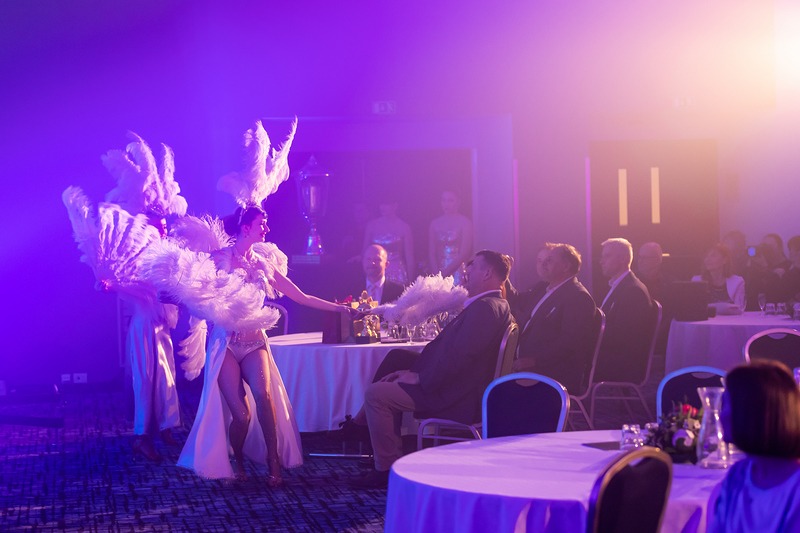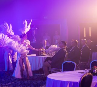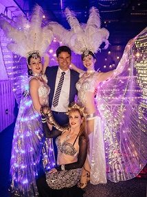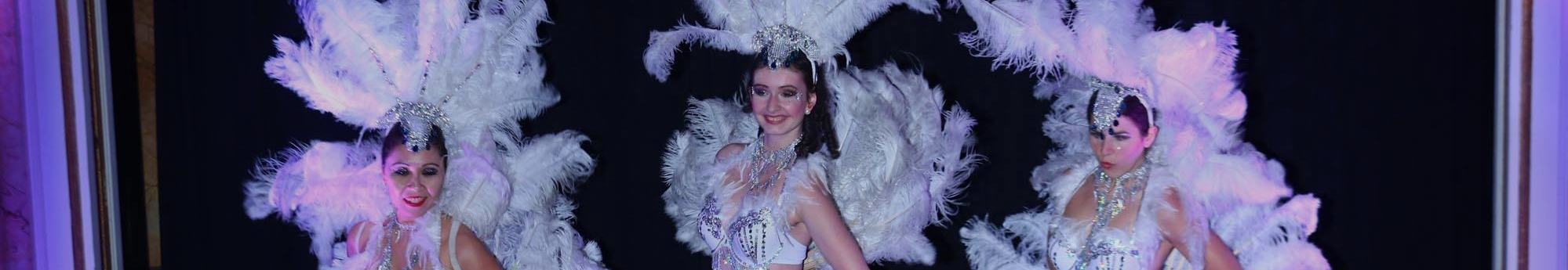 Showgirls dancers in feather costumes – a scene like a cut out of Las Vegas luxury. Graceful dancers in lavish costumes made of beautiful feathers and glittering rhinestones will give you an unforgettable show. Showgirls are one of our most in-demand shows. A combined show with dancing with large ostrich fans and a unique light show with the possibility of visualizing your company logo or municipality emblem and the name of the birthday boy directly in our show.