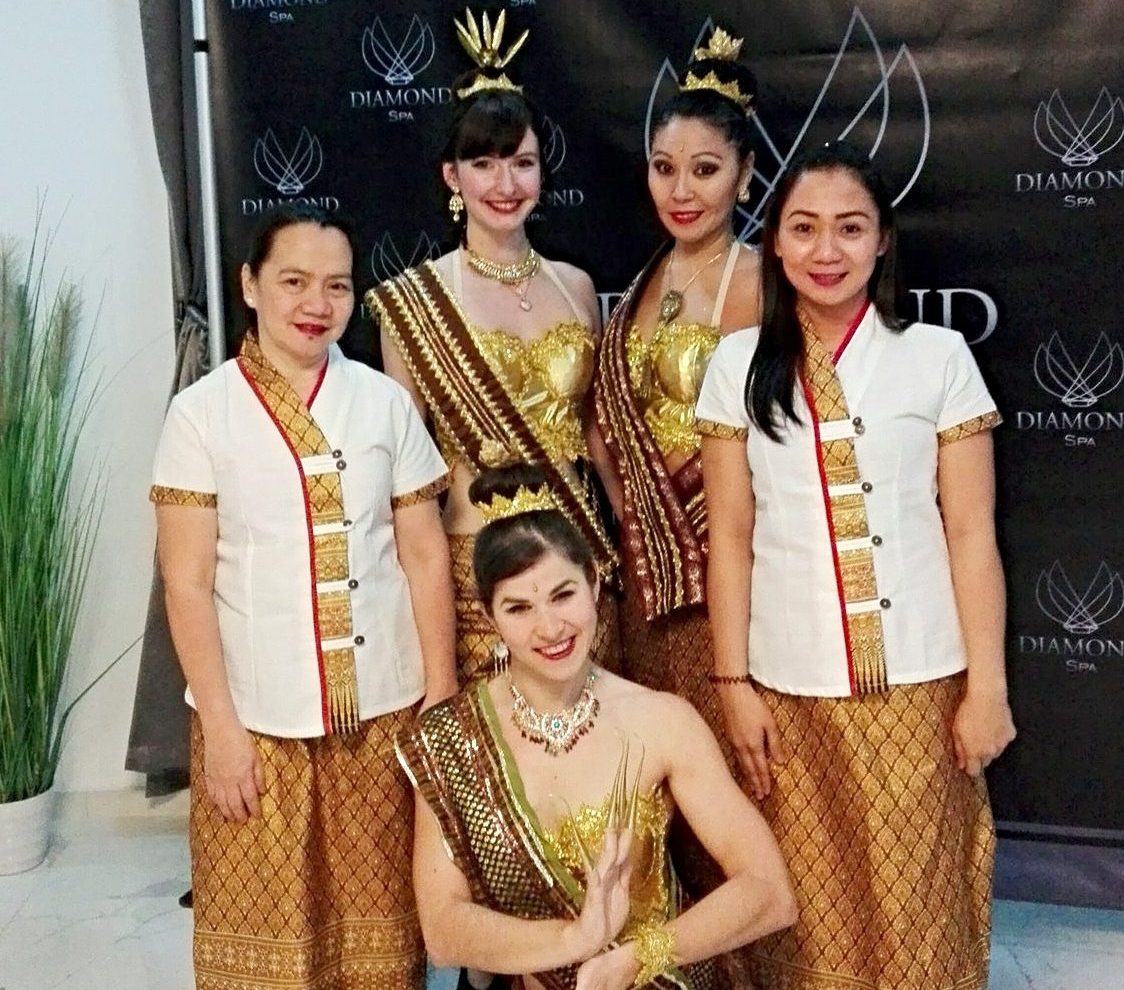 Náš thajský program vznikl na základě zakázky pro luxusní masážní salon v centru Prahy – “Diamond SPA”. Vystoupení uvidíte v originálních kostýmech a s tradičními prvky thajských tanců. Choreografii jsme připravili na klasickou hudbu s thajskými prsty a také moderní část se světelnými křídly. Pozlacené tzv. „dlouhé prsty“ z tanců severního Thajska dokonale dokreslují pohyby a gesta rukou tanečnic.