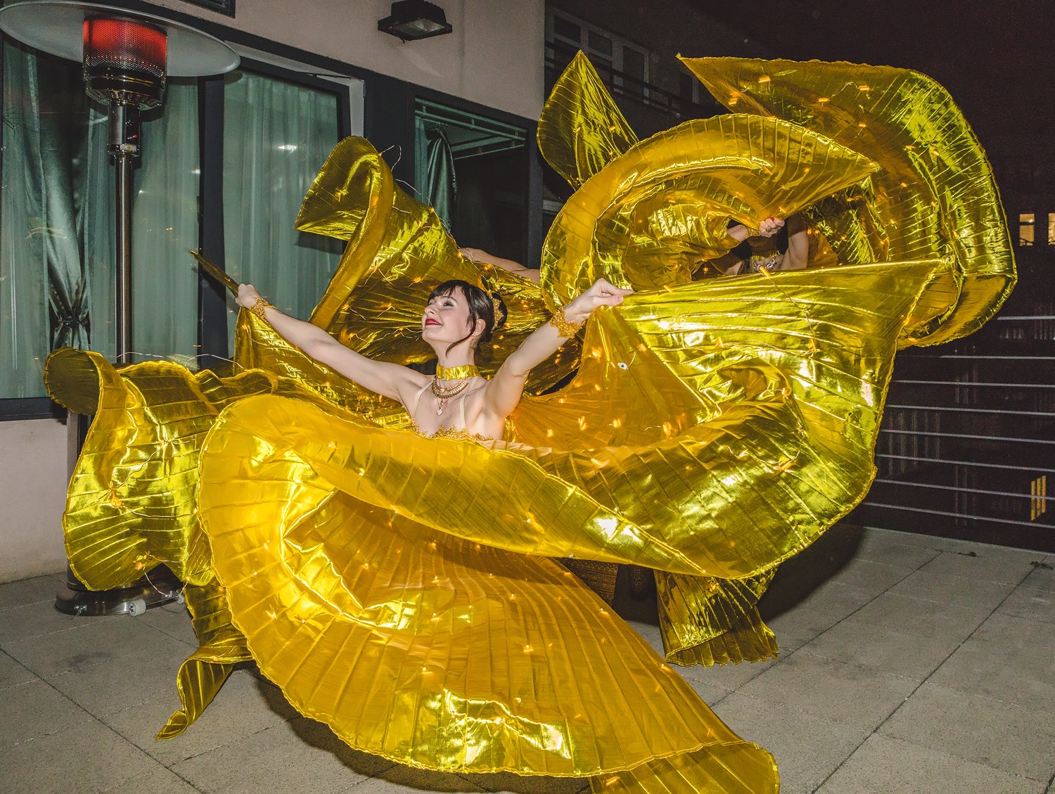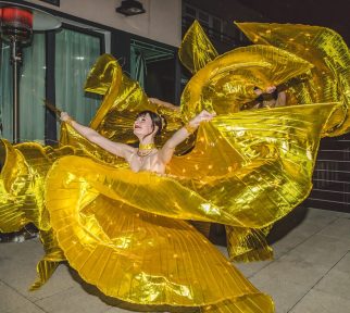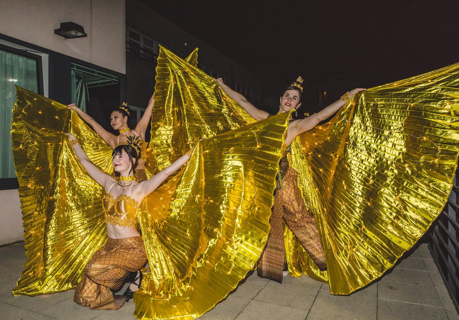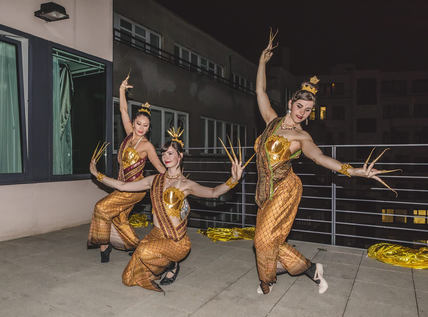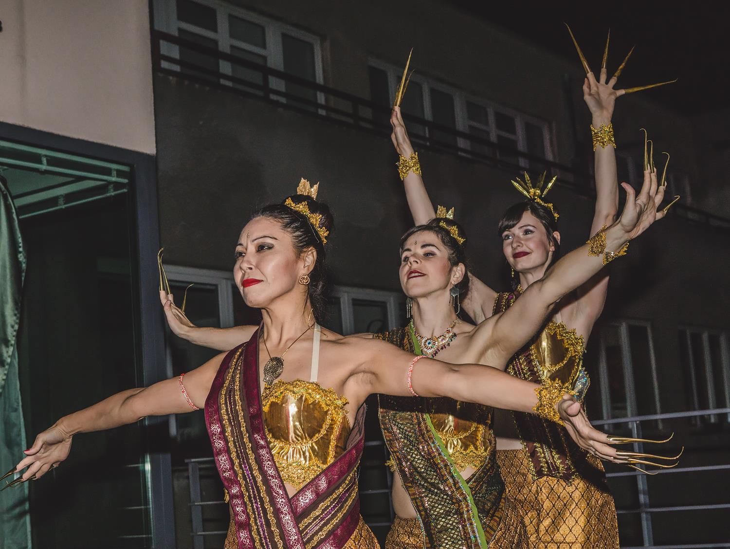 Náš thajský program vznikl na základě zakázky pro luxusní masážní salon v centru Prahy – “Diamond SPA”. Vystoupení uvidíte v originálních kostýmech a s tradičními prvky thajských tanců. Choreografii jsme připravili na klasickou hudbu s thajskými prsty a také moderní část se světelnými křídly. Pozlacené tzv. „dlouhé prsty“ z tanců severního Thajska dokonale dokreslují pohyby a gesta rukou tanečnic.